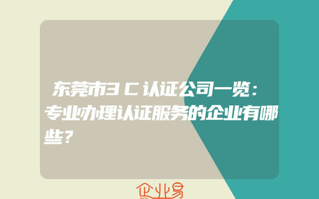 - 东莞市3C认证公司一览:专业办理认证服务的企业有哪些?