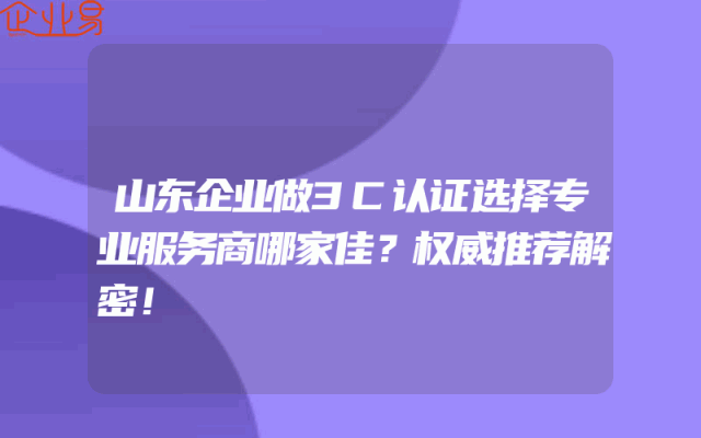 - 山东企业做3C认证选择专业服务商哪家佳?权威推荐解密!