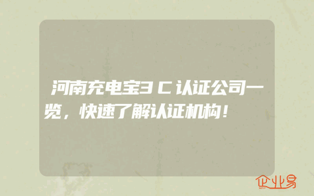 - 河南充电宝3C认证公司一览,快速了解认证机构!