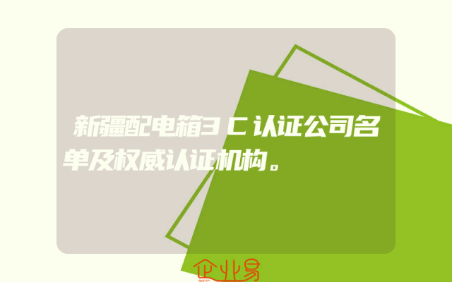- 新疆配电箱3C认证公司名单及权威认证机构。