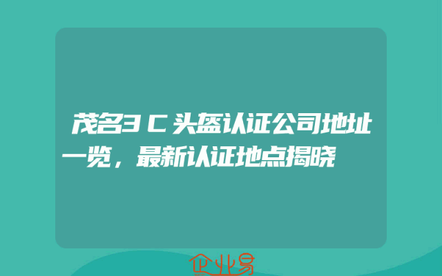 - 茂名3C头盔认证公司地址一览,最新认证地点揭晓
