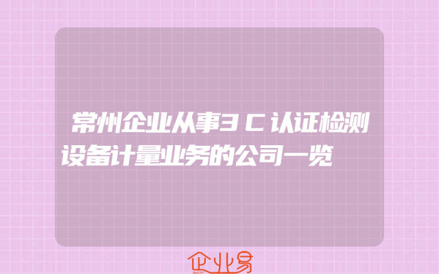- 常州企业从事3C认证检测设备计量业务的公司一览