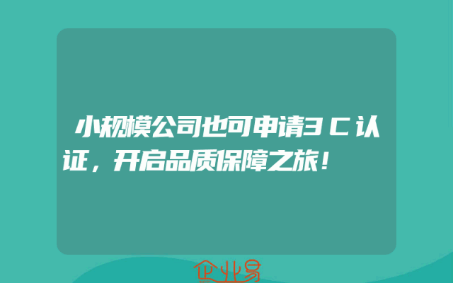 - 小规模公司也可申请3C认证,开启品质保障之旅!