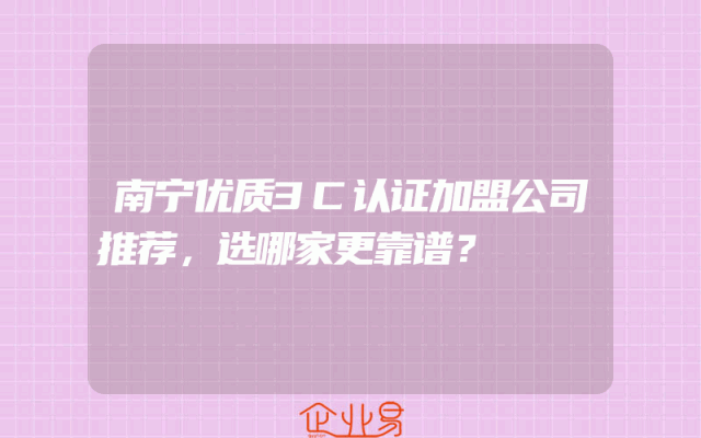 - 南宁优质3C认证加盟公司推荐,选哪家更靠谱?