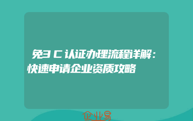 - 免3C认证办理流程详解:快速申请企业资质攻略