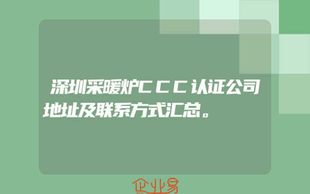 - 深圳采暖炉CCC认证公司地址及联系方式汇总。