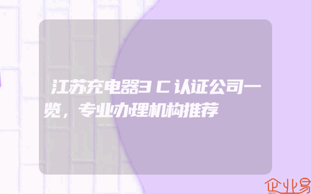 - 江苏充电器3C认证公司一览,专业办理机构推荐