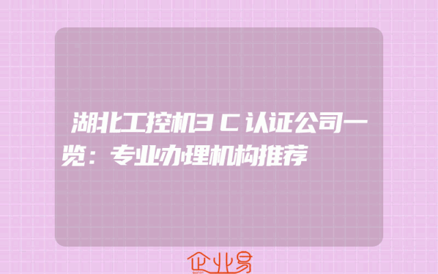 - 湖北工控机3C认证公司一览:专业办理机构推荐