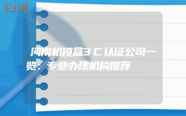 - 河南机顶盒3C认证公司一览:专业办理机构推荐