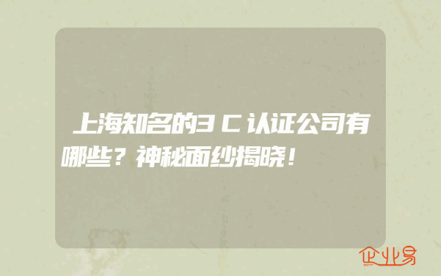 - 上海知名的3C认证公司有哪些?神秘面纱揭晓!