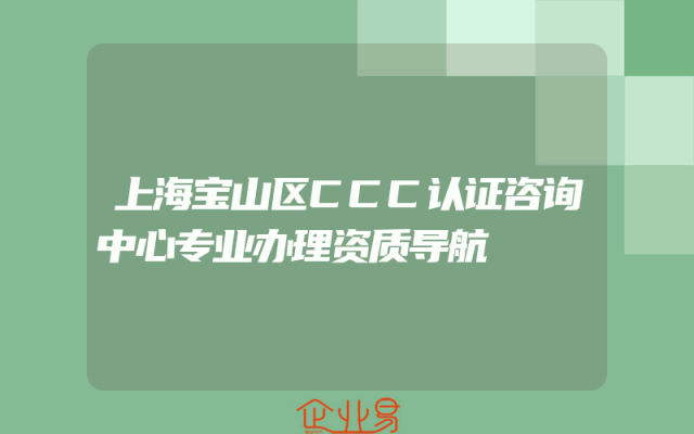 - 上海宝山区CCC认证咨询中心专业办理资质导航