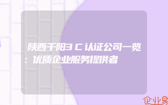 - 陕西千阳3C认证公司一览:优质企业服务提供者
