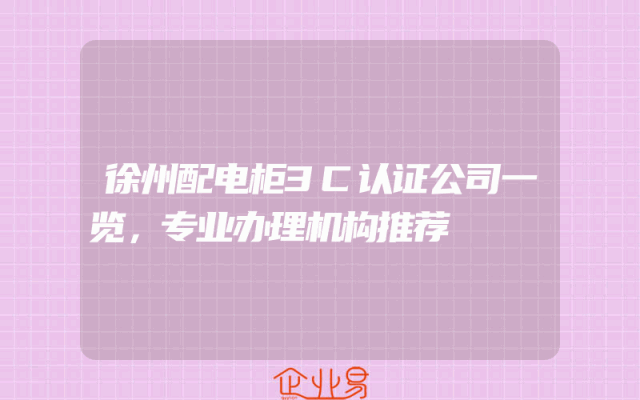 - 徐州配电柜3C认证公司一览,专业办理机构推荐