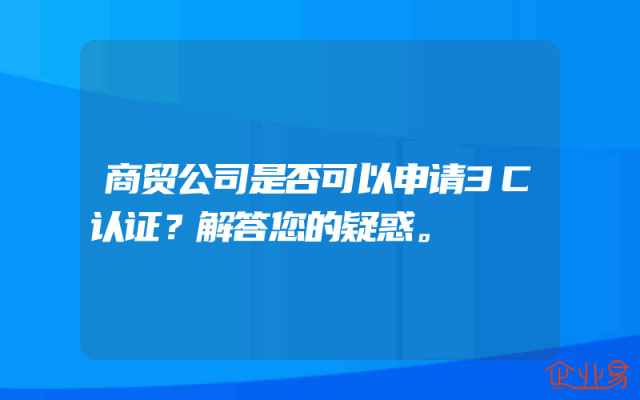 - 商贸公司是否可以申请3C认证?解答您的疑惑。