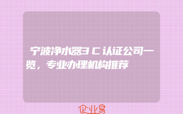 - 宁波净水器3C认证公司一览,专业办理机构推荐