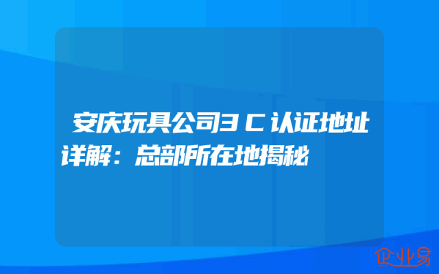 - 安庆玩具公司3C认证地址详解:总部所在地揭秘