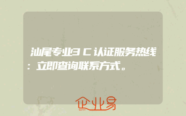 - 汕尾专业3C认证服务热线:立即查询联系方式。