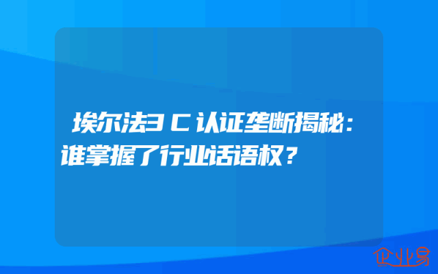 - 埃尔法3C认证垄断揭秘:谁掌握了行业话语权?
