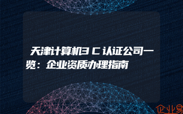 - 天津计算机3C认证公司一览:企业资质办理指南