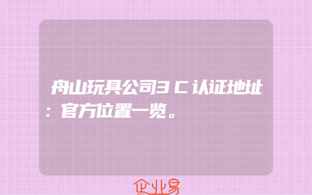 - 舟山玩具公司3C认证地址:官方位置一览。