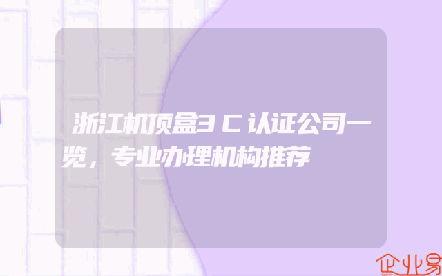 - 浙江机顶盒3C认证公司一览,专业办理机构推荐