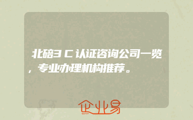 - 北碚3C认证咨询公司一览,专业办理机构推荐。
