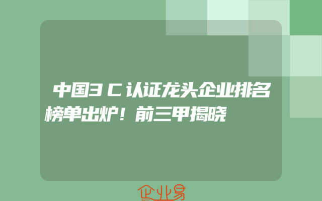 - 中国3C认证龙头企业排名榜单出炉!前三甲揭晓