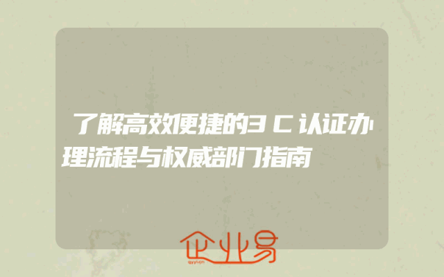 - 了解高效便捷的3C认证办理流程与权威部门指南