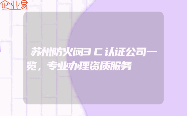 - 苏州防火阀3C认证公司一览,专业办理资质服务