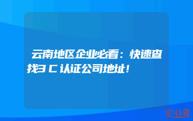 - 云南地区企业必看:快速查找3C认证公司地址!