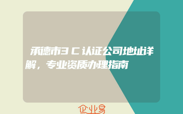 - 承德市3C认证公司地址详解,专业资质办理指南