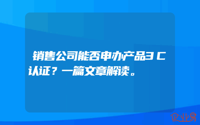 - 销售公司能否申办产品3C认证?一篇文章解读。