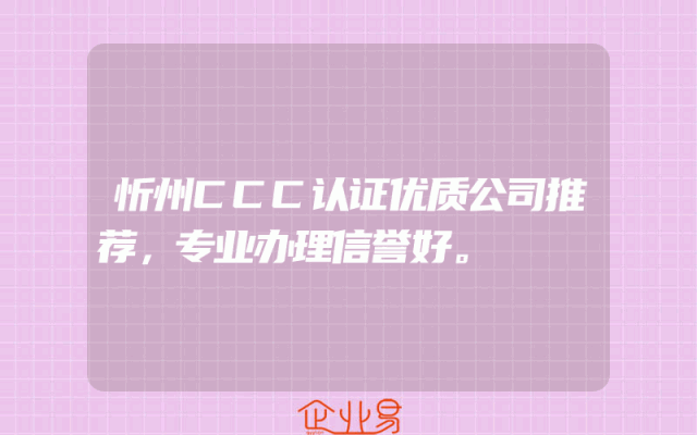 - 忻州CCC认证优质公司推荐:专业办理信誉好一、引言在如今的市场环境中,企业的合规运营至关重要,特别是在涉及国家安全和消费者利益的关键领域。CCC认证是中国政府为保护消费者人身安全及国家经济利益而推出的一项产品认证制度。本文将为大家推荐忻州地