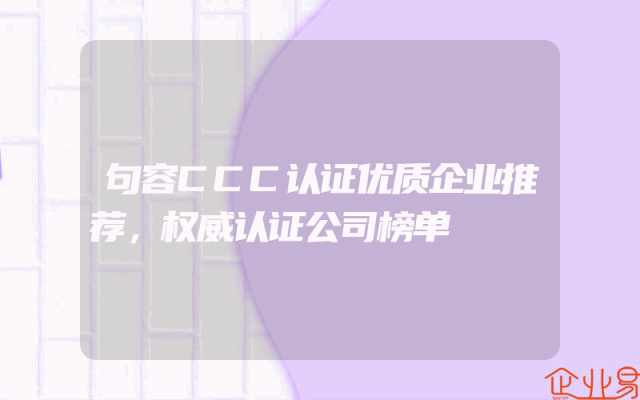 - 句容CCC认证优质企业推荐,权威认证公司榜单