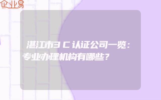 - 湛江市3C认证公司一览:专业办理机构有哪些?