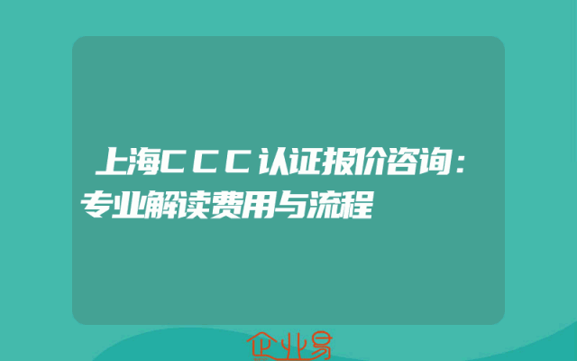 - 上海CCC认证报价咨询:专业解读费用与流程