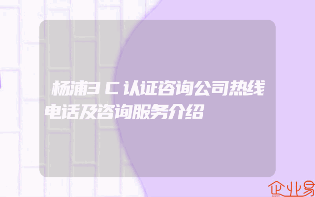- 杨浦3C认证咨询公司热线电话及咨询服务介绍