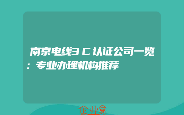 - 南京电线3C认证公司一览:专业办理机构推荐
