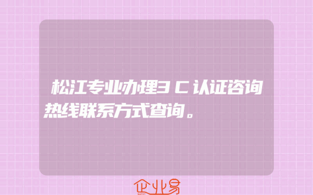 - 松江专业办理3C认证咨询热线联系方式查询。
