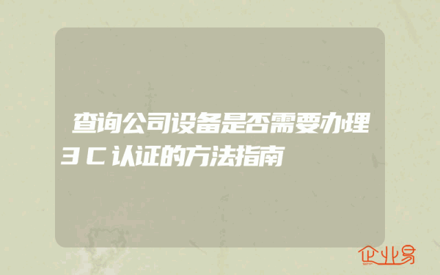 - 查询公司设备是否需要办理3C认证的方法指南一、了解3C认证基本概念首先,我们需要明确什么是3C认证。3C认证全称为“中国强制性产品认证”,是一种对涉及人身安全、健康安全及环境保护的设备实施的法定强制性认证。对于出口到中国的产品,如果涉及到相