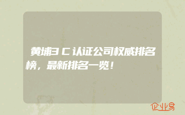 - 黄埔3C认证公司权威排名榜,最新排名一览!