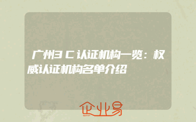 - 广州3C认证机构一览:权威认证机构名单介绍
