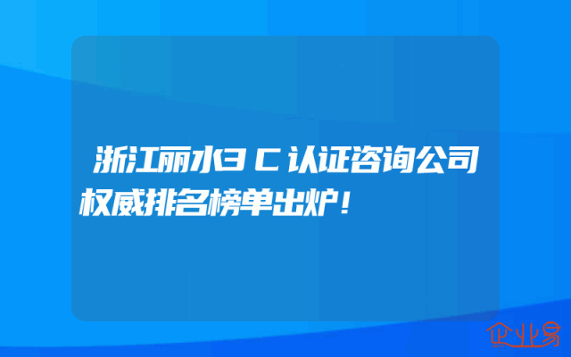 - 浙江丽水3C认证咨询公司权威排名榜单出炉!