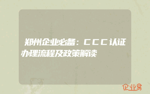 - 郑州企业必备:CCC认证办理流程及政策解读