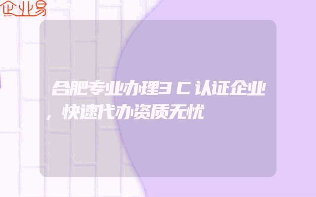 - 合肥专业办理3C认证企业:快速代办资质无忧一、引言随着市场竞争的日益激烈,企业对于资质认证的需求愈发强烈。在合肥,专业的办理3C认证企业如雨后春笋般涌现,为企业提供快速、高效的资质代办服务,助力企业在市场竞争中取得优势。二、3C认证的重要性