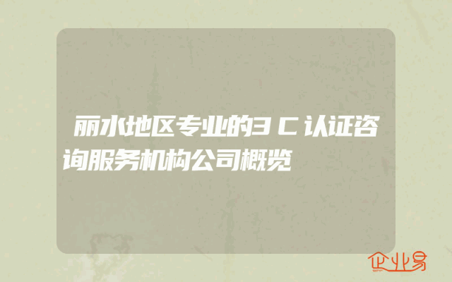 - 丽水地区专业的3C认证咨询服务机构公司概览