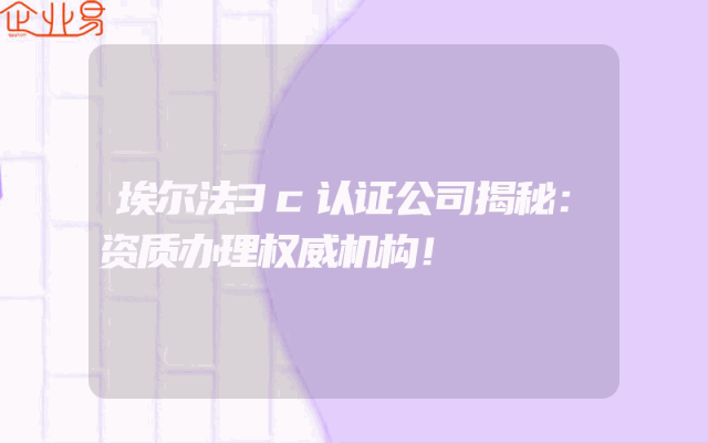 - 埃尔法3C认证公司揭秘:资质办理权威机构引言随着市场竞争的加剧,企业在寻求发展壮大的过程中,不可避免地需要办理各类资质认证。在众多资质办理机构中,埃尔法3C认证公司作为权威机构之一,受到广泛关注。本文