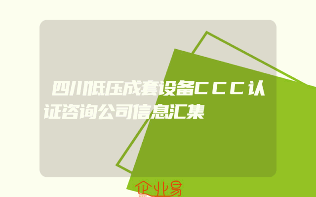 - 四川低压成套设备CCC认证咨询公司信息汇集