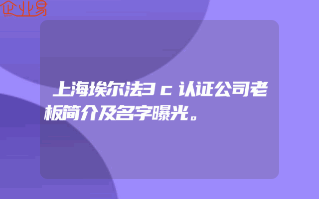 - 上海埃尔法3c认证公司老板简介及名字曝光。