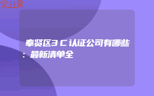 - 奉贤区3C认证公司最新清单全解析一、奉贤区3C认证概述奉贤区作为上海市的一个重要经济区域,拥有众多的企业和工厂。随着市场竞争的加剧和消费者需求的提高,许多企业开始重视产品质量和安全性,进而寻求通过各类认证来提升竞争力。其中,3C认证